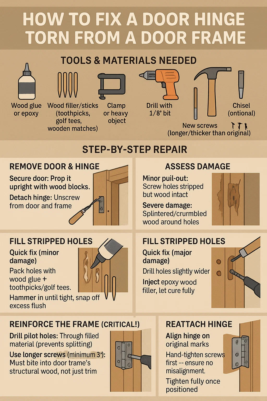 Így lehet kijavítani a ajtó csuklópánt Szakítja az ajtókeretről, lépésről lépésre: